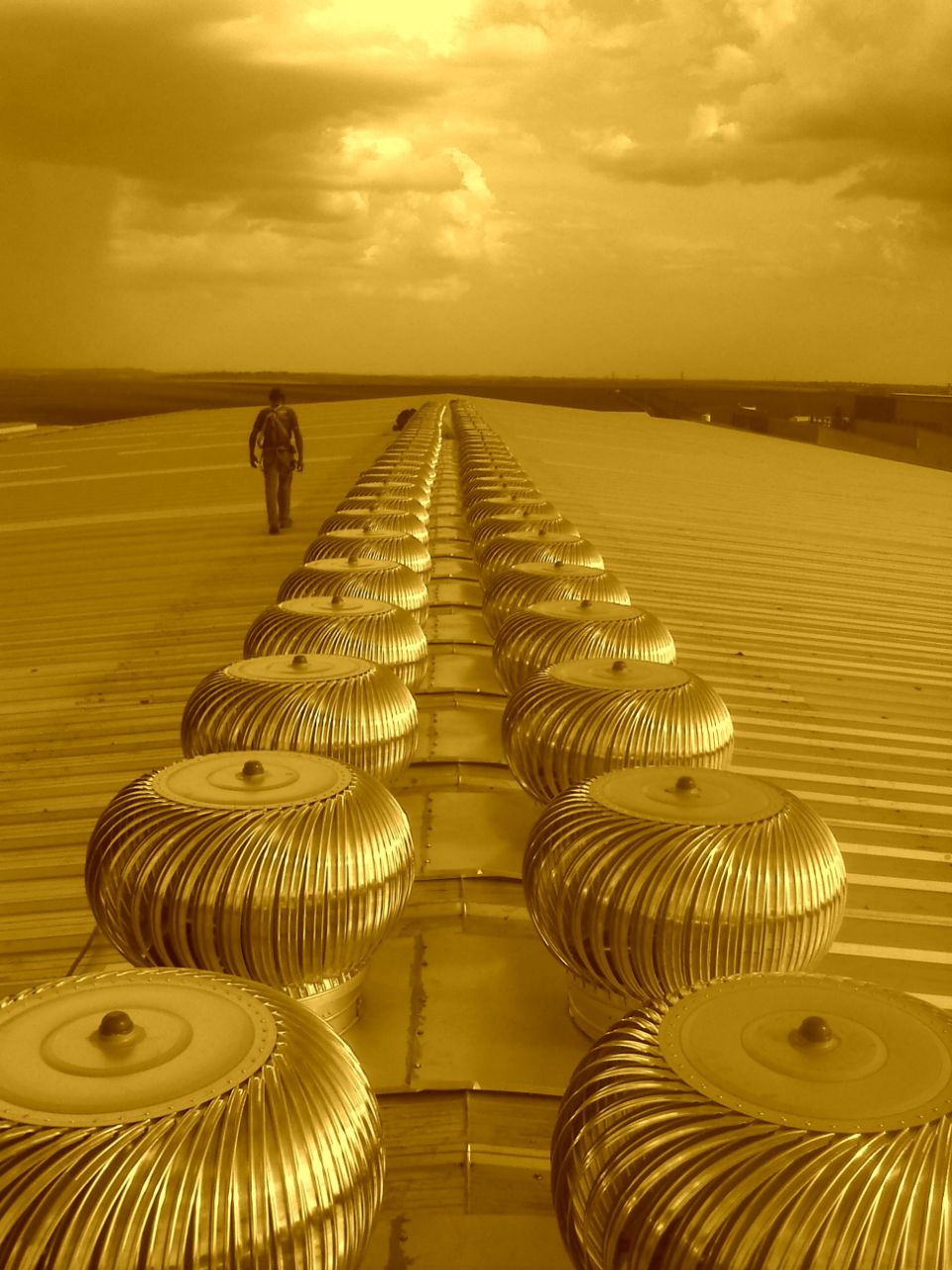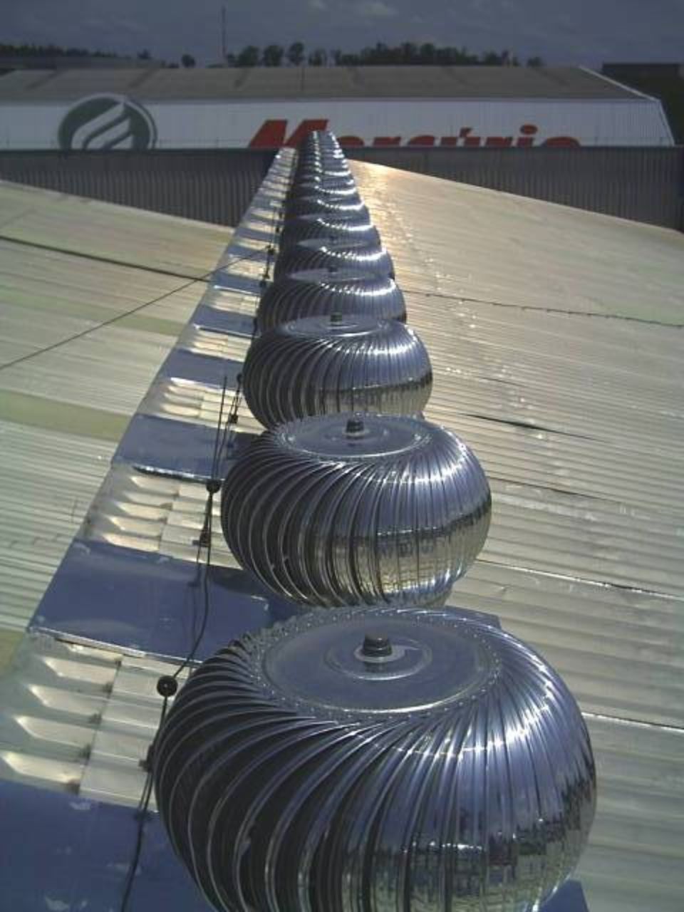Os exaustores eólicos Ipanema são aparelho s que removem a camada de ar quente acumulada, proporcionando conforto e um ambiente adequado à produtividade. Seu funcionamento acontece devido ao seu formato esférico, que consequentemente é impulsionado pela corrente de ar externa. Mesmo na ausência de ventos a massa de ar quente ascendente exerce uma pressão no interior do globo do exaustor fazendo com que o mesmo gire. O seu movimento puxa o ar para fora, possibilitando a entrada de ar frio pelas portas e janelas restabelecendo assim o equilíbrio térmico. Os exaustores eólicos devem ser instalados na parte mais alta do telhado e a sua boa eficiência está diretamente relacionado ao número de peças indicados.